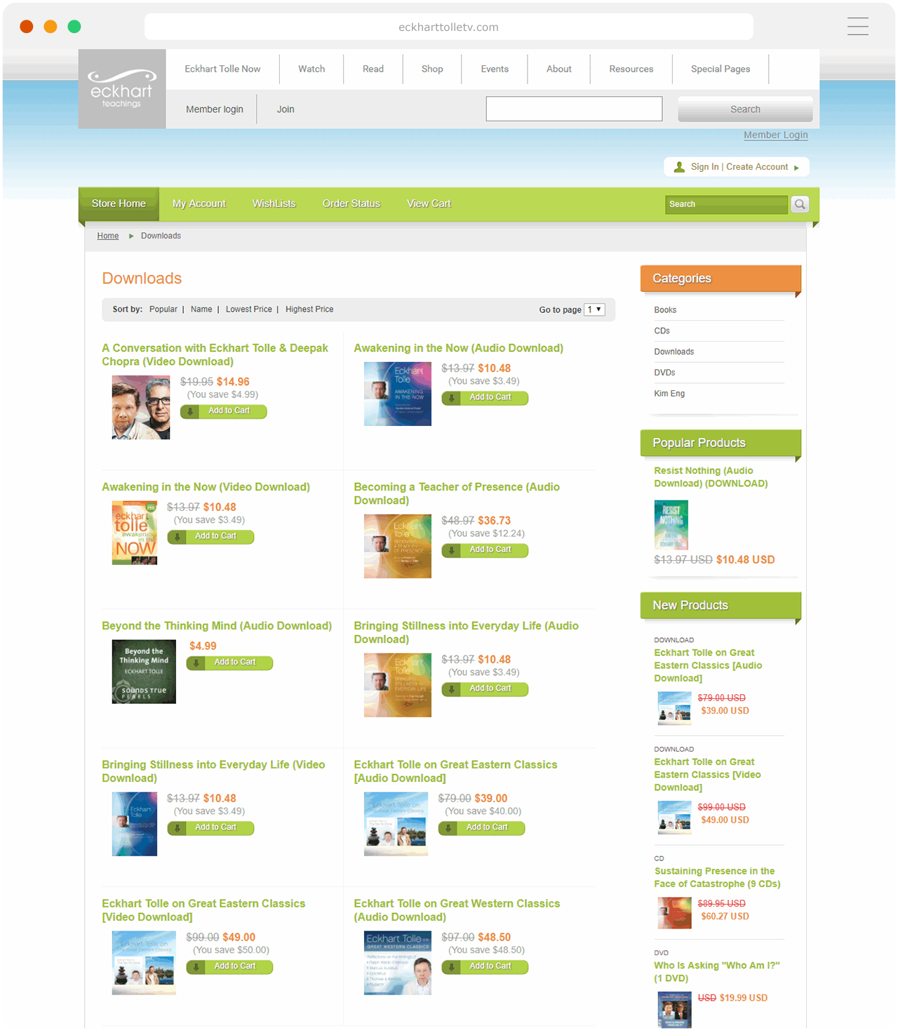 A custom store was graphically designed and developed for Eckhart Tolle TV, including the ability to sell and deliver digital downloads, as well as video-on-demand (VOD) playback of digital products. This functionality is available live online at Eckhart Tolle TV Store